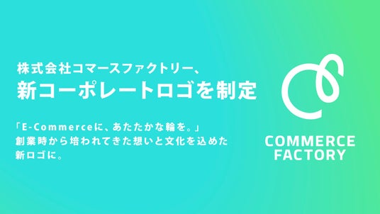 新しいロゴは、当社「Commerce Factory」の頭文字「C」「F」をベースにしながら、同時に「e」「c」(E-Commerce)としても読み取れる一本の曲線で構成しています。