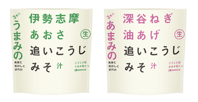 味噌・醸造製品メーカーのハナマルキ株式会社(本社:長野県伊那市、代表取締役社長:花岡周一郎、以下当社)は、2023 年秋の新商品として、2021 年に発売したみそ商品「無添加減塩追いこうじみそ」を生詰めした即席みそ汁「あまみの深谷ねぎ 追いこうじみそ汁」「うまみのあおさ 追いこうじみそ汁」を 9 月 1 日(金)より発売開始いたします。