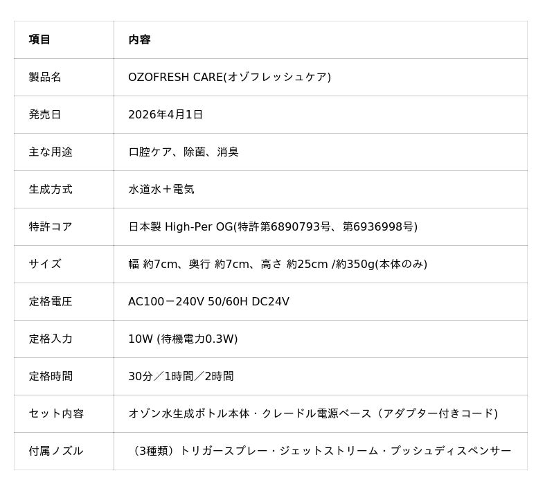 OZOFRESH CAREの2026年4月の正規販売開始に先駆け、