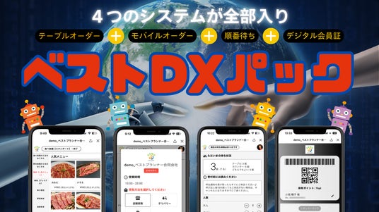 2025年3月1日より、飲食店向けの新パッケージシステム「ベストDXパック」の提供を開始いたします。本サービスでは、ランクアップ機能付き会員証・順番待ちシステム・テーブルオーダーシステム・モバイルオーダーシステムの4つの機能を一つにまとめました。人手不足や夜間対応、注文ミスなど、忙しい飲食店特有の課題を効率的に解消し、売上アップと顧客満足度の向上を同時に実現することを目指しています。