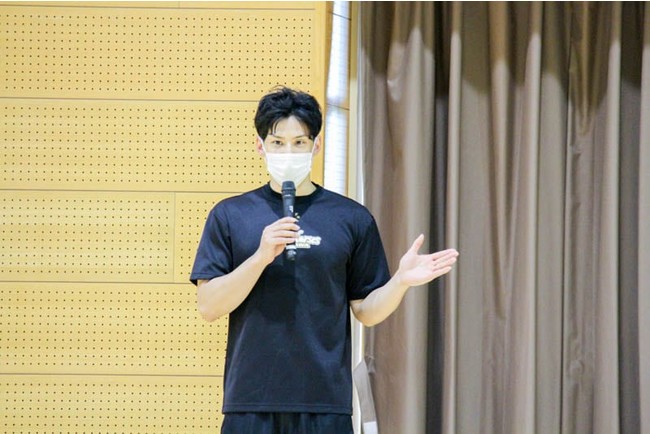 ペアを組んでのドリブルやシュートの練習、中村選手、細谷選手よりチームワークの大切さや相手を思いやる気持ち、目指すスポーツマンについて子どもたちへメッセージを伝えました。