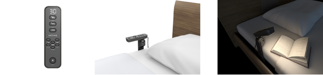 今回のモデルチェンジでは、ベッド内のモーターや配線コードなどが見えにくい仕様を実現し、デザイン性の向上を目指しました。また、手元スイッチは使い勝手を見直し、従来品と比べて、よりコンパクトで持ちやすい形状としたほか、本を読むときやリラックスした姿勢などのお気に入りのポジションを登録できる3つのメモリーボタンやLEDライトなど便利な機能を追加しました。