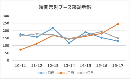 滞在人数のしきい値を設定し、ブース内に多くの来場者が訪れるピーク時間を把握することで、その時間帯の人員を補充するなど、1日ごとに展示会スタッフの配置や動き方を変更しました。