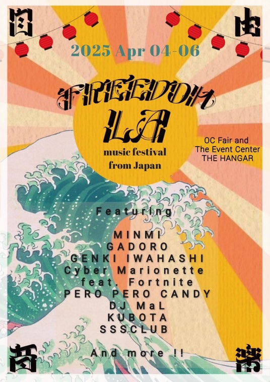 開催日: 2025年4月4日(金)~ 4月6日(日)会場: OC Fair & Event Center, The Hangar (Costa Mesa, CA)チケット・イベント詳細はこちら: freedom-la.com