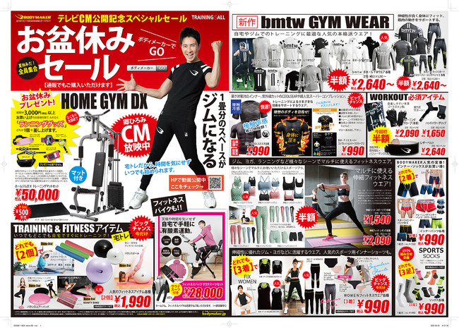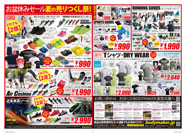BODYMAKER(ボディメーカー)では、日頃のご愛顧に対する感謝の気持ちを込めて、8月11日(祝)~8月31日(水)の期間、全国の直営店で夏休み恒例「お盆休みセール」を開催します!