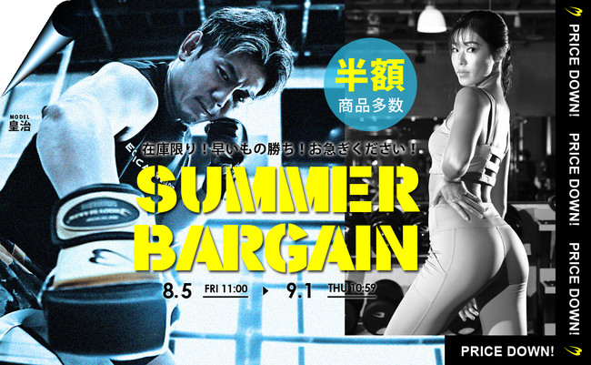 また、ボディメーカーオンラインストア(http://www.bodymaker.jp/shop/)では、8月5日(金)から、一足先に同セールをスタート。夏のスポーツを快適に!機能性を追求した新商品や最大半額ドキドキの連続です。今年もBODYMAKER(ボディメーカー)は、挑戦し続けます。送料無料商品も数多くございますので、ぜひ一度ご覧ください。