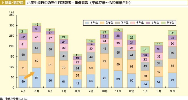 内閣府の調査結果によると、5月度は下校中の子供の交通事故が1番多い時期です。