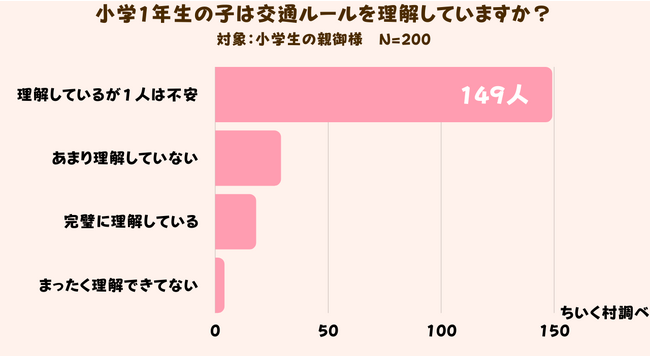 小学1年生の子は交通ルールをどれぐらい理解しているのか調査したところ、200人中149人が「理解はしているが1人ではまだ不安」と回答していました。