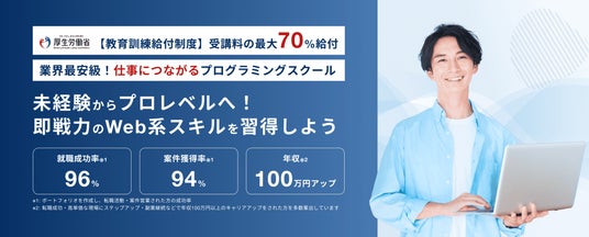 『Webエンジニア就職コース』『Web制作フリーランスコース』『PHP/Laravelコース』の3コースが、厚生労働省の給付金対象講座に認定されました。該当コースは、2024年4月1日より受講可能です