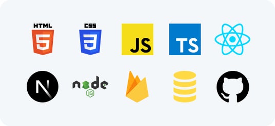 HTML、CSS、JavaScript(DOM)、TypeScript、React、Next.js、Node.js、Firevase、SQL、GitHub など