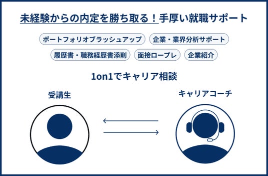 開発ができるWebエンジニア就職を目指す就職カリキュラム専属キャリアコーチと1on1面談が可能。