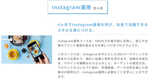 Instagram運用コースは、SNSの力を最大限に活用し、個人や企業のブランド価値を高める力を身につけるプログラムです。