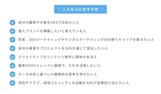 また「Instagram運用コース」は、これまでの2回の開講で受講生から高い満足度を得ており、多くの受講生が起業や総合型選抜での合格など、それぞれの道を切り拓いています。今後も多くの高校生が好奇心に従って探究できる場を提供したいという思いから、2期生の募集を開始しました。