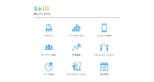 実践的かつ体系的なスキルを身につけるとともに、修了後は就業型の有償インターンをKnockLearnから紹介・サポートします。プログラム受講者が継続的に自律学習を続けながらビジネススキルを磨き「社会への扉を開き、1人1人の”自分らしさ”を磨き続ける」ことに寄与することが目的です。