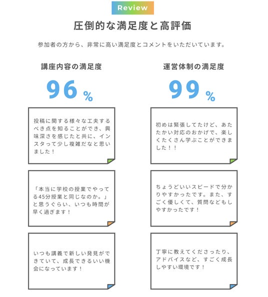 これまで実施した「Instagram運用コース」0期・1期では、想定以上の反響や期待を上回る高校生の成長を感じており、上記の課題を解決し得る、現代に必要なプログラムであると確信しております。