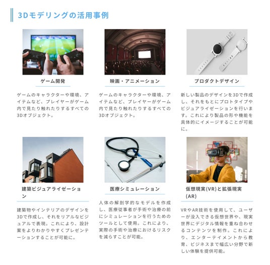 VR/ARの普及やゲーム、映画産業などでの需要が増加している今、3Dモデリング技術はこれらの分野で活躍するために必要不可欠なスキルとなっています。早期から3Dモデリングに関する技術に触れてほしいという思いから、新たなコースとして「3Dモデリングコース」の開講を決めました。