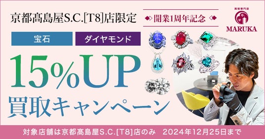 なんと、MARUKA京都高島屋S.C.[T8]店にかぎり宝石・ダイヤモンドの買取価格を通常査定価格の15%UPで買取りいたします。