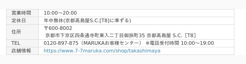 【MARUKA京都高島屋S.C.[T8]店 店舗情報】