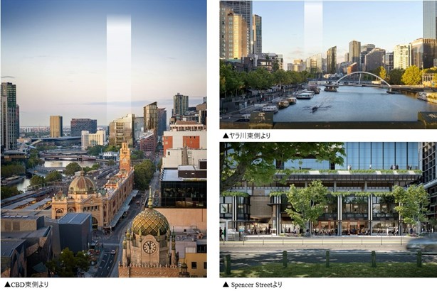 本プロジェクトは、市内主要駅のサザンクロス駅から無料のトラムで約1分(徒歩5分)と交通利便性に優れるとともに、その北側に広がる主要オフィスエリアと、観光・商業施設が集積する南側エリアの中間に位置します。街の中央を流れるヤラ川を正面に望み、その両岸のビル群を一望できる優れた景観を有する希少性の高い好立地です。