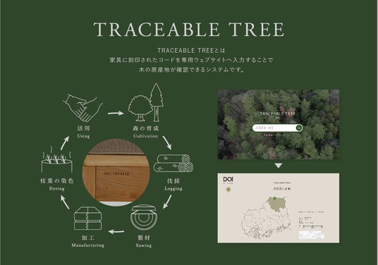 土井木工株式会社(本社:広島県府中市、代表取締役社長:土井啓嗣)は、家具に使用している木材の原産地を確認できる仕組み「TRACEBLE TREE」をWOODコレクション2026にて展示いたします。