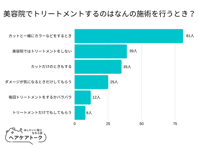 「美容院でトリートメントをするのはなんの施術を行うとき?」とアンケート調査した結果、1位は『カットと一緒にカラーなどをするとき』でした。