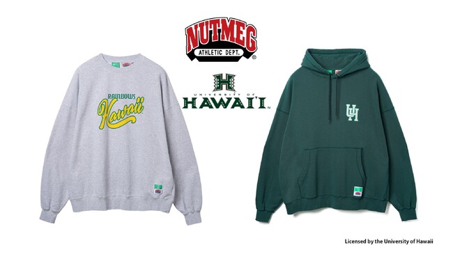 アパレルとバッグ及び雑貨の製造販売を行うハワード株式会社(所在地:東京都渋谷区、代表取締役:早川 豪彦)は、アメリカの大学、NBA、NFLなどのスポーツアパレルとして世界的に名を知られたブランド"NUTMEG"から、HAWAII大学のトレーナー・パーカーを発売しました。