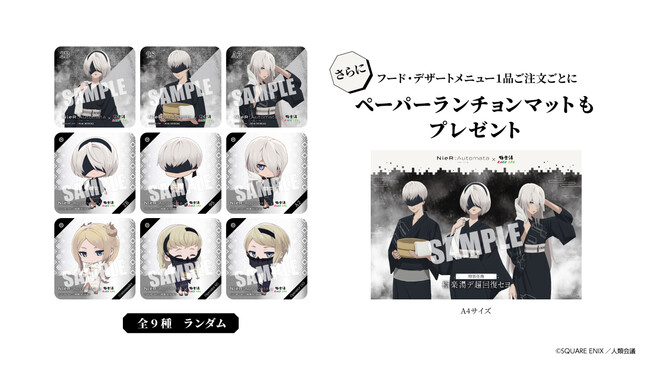 店舗ご入館時に、入館料金+ニーアプラスセットの料金をお支払いいただいた方に、描き下ろしイラストを使用したコラボ限定クリアポスターをランダムでお渡しします。