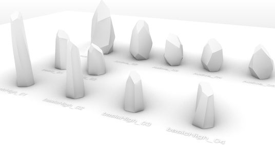 パラメトリックデザインによってつくられた多種多様のクリスタル形状