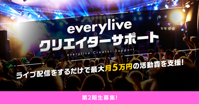 エブリライブ株式会社(本社:東京都新宿区・代表取締役:佐々木尚之・URL:https://everylive.jp/)が運営するライブ配信アプリ「everylive(エブリライブ)」は、配信クリエイターの活動を支援する「クリエイターサポート制度」の第2期生の募集を開始いたしました。