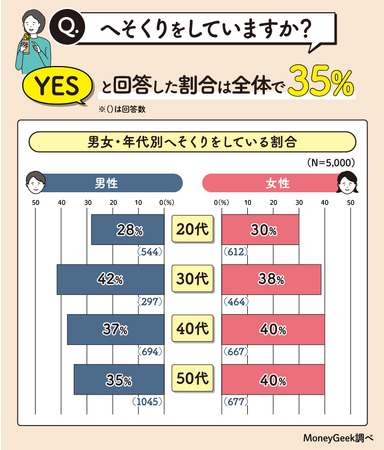 その結果、へそくりをしていると回答した人は全体の35%いました。