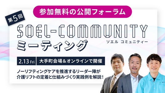 日本ケアリフトサービス株式会社(本社:兵庫県/代表:高橋 恒治)は、介護リフトの定着と仕組みづくりをテーマにした「第5回 SOEL COMMUNITY ミーティング」を2026年2月13日(金)13:00~17:00に開催します。