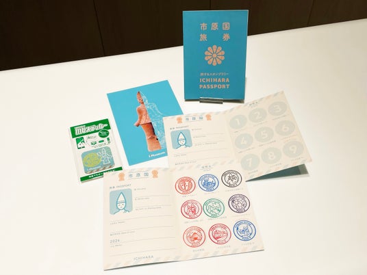 「旅するはにわ」のテーマに合わせ、来館者が楽しめるスタンプラリーも開催しています。館内・敷地内展示スペース7か所、それ以外の市内スポット2か所を巡りスタンプを集めると、記念のはにわグッズがもれなくもらえます。「旅券」型のシートを入手して参加できます。