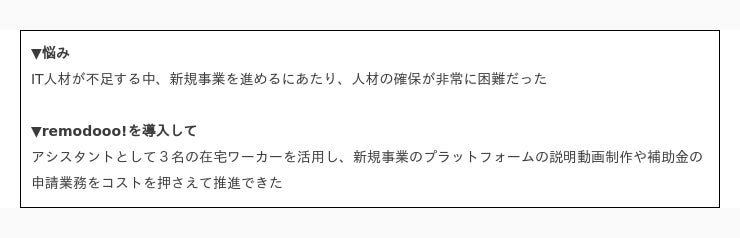 人手不足(=マンパワー不足)によって抱えている課題に対して、在宅ワーカーを有効に活用することで、企業の生産性向上やコスト削減、柔軟性の向上をサポートし、新しい経営体制を構築することを目指します。