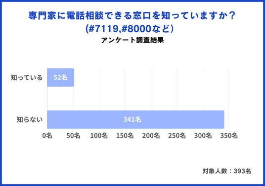 - 休日や夜間の緊急時に相談できる病院を知らない人の割合: 80.0% (314/393名中)