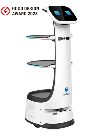 サービス業界における労働力の確保やホスピタリティ向上を支援する配膳・配送ロボットで、2023年にはグッドデザイン賞を受賞しました。狭い通路がある多い日本の店舗にも対応できます。KEENONが開発したマップ構築システム(SLAM)により、常に信頼性の高い位置決め、より精度の高い障害物回避が可能となっています。また、最小通過幅55cmの狭い通路を通過することができるコンパクトなボディや使いやすいタッチスクリーンにより、どの角度からでも簡単な操作でき、スムーズな配膳・配送を実現します。