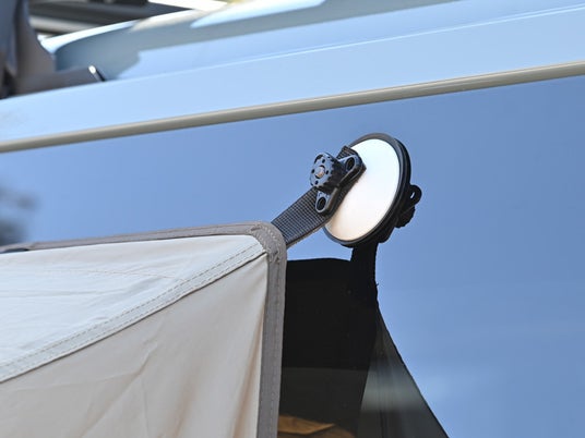 2本のフレーム、最大4か所のペグダウン(張り綱含む)と、車への吸盤取り付けだけで設営は完了。