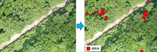 - AIを活用した樹種識別により「枯死木」を検出*2