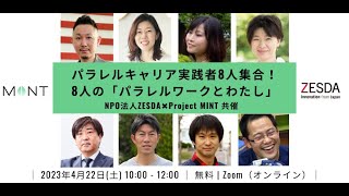 去る4月22日(土)に、オンライントークイベント『パラレルキャリア実践者8人集合!8人の「パラレルワークとわたし」』を開催しました。ZESDAからは桜庭代表の他、瀬崎理事や上野・佐山・三宅シニアプロデューサーがスピーカーとして参加しました。共催のProject MINTからは、鉄道、バイオ・ヘルスケア、医療機器・通信などを本業とする多様なパラレルキャリア実践者が参加し、本格化の兆しを見せる“パラレルキャリア”人口の拡大へ後押しするリアルなトークが行われました。