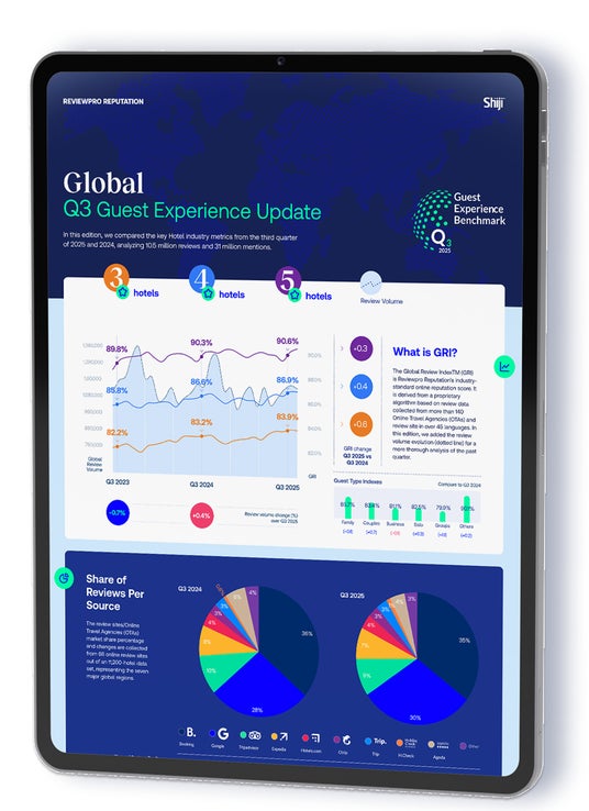 世界80以上のレビューサイト、45言語のレビューを横断的に分析し、独自の指標GRI(TM)や競合指標スコアCQI(TM)を用いて、単なる「クチコミ管理」にとどまらない戦略的レピュテーション管理を実現します。その他、AI返信や自動タスク機能など、レピュテーション管理に必要な機能を包括的にご提供します。