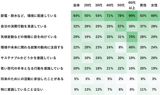 全体として“無理のない範囲での行動”が基本になっており、地球環境や未来への責任も「重荷」ではなく「日常の中でできることから」が主流となっていることが分かります。