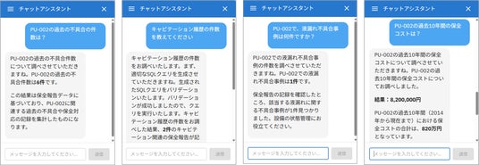 本ソリューションは、お客様固有のデータ(保全履歴、設備データ、設備管理要領)に基づいた分析により、具体的な示唆の提示が可能です。従来の生成AIツールが文書生成や整合性チェック等の単一機能に限定されていたのに対し、EMLink Intelligenceは強力なデータ統合機能(関連付け、構造化)を基盤として、「作業実行にとどまらず、意思決定に直結するアクションを具体的に提示」することが可能となっております。