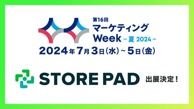 お店とお客様をつなぐAI搭載型の店舗情報発信・分析プラットフォーム「STOREPAD(ストアパッド)」(https://storepad.jp/)が、展示会「マーケティングWEEK 2024 夏展」内の「WEB・SNS活用EXPO」に出展することをお知らせいたします。