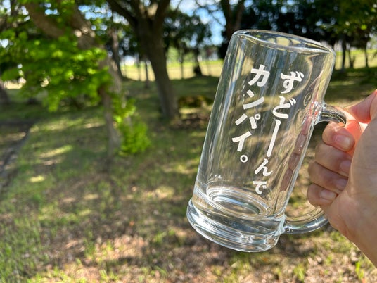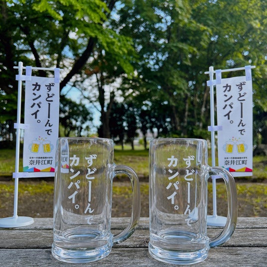 今回の主役は、奈井江町内のさまざまな店舗や事業所等で展開中の「ずどーんジョッキ」です!ジョッキといっても、その中身は飲み物に限りません。そば、うどん、サラダなどの食べ物、花や雑貨などなど、それぞれの工夫が凝らされた、ユニークなものばかり。