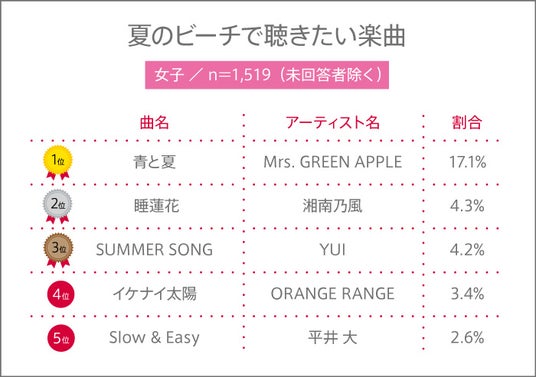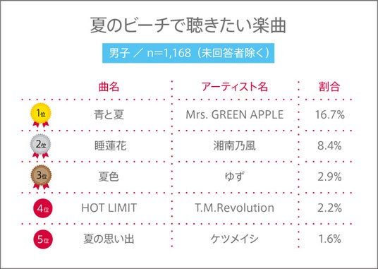 男女共通の1位は、高校生から圧倒的人気を誇るバンドの夏ソング!女子の3位には、TikTokなどで再注目されている2008年リリースのあの曲がランクイン!