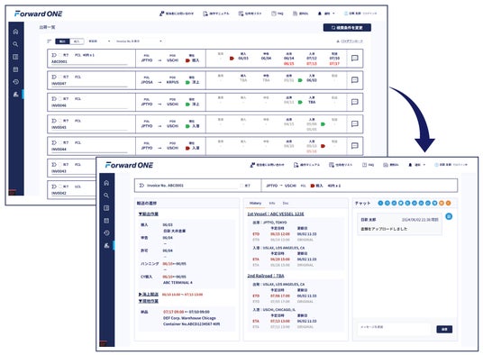 「Forward ONE」は分かり易さ・使い易さを重視する国際物流サービスサイトとして、今後もお客様にとって利便性の高い機能を提供し続け、パートナー企業と共に貿易実務・輸出入手配の効率化を強力に推進してまいります。