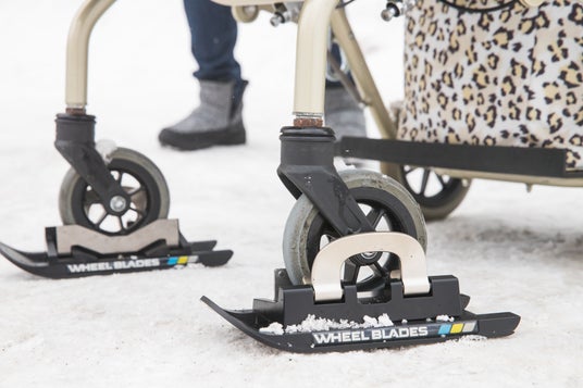 今回は、前輪に小さいスキーのようなものをつける補助具を使用しました。