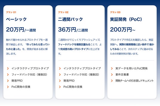 本サービスは、従来、数か月・数百万円規模で行われていたPoCやプロトタイピングを、短期間・低コストで実現。プロダクト開発における検証コストと意思決定スピードの課題を同時に解決します。