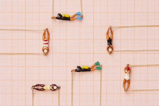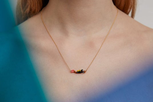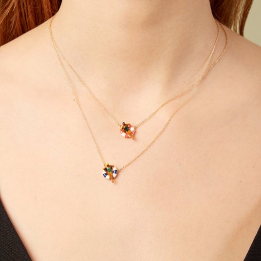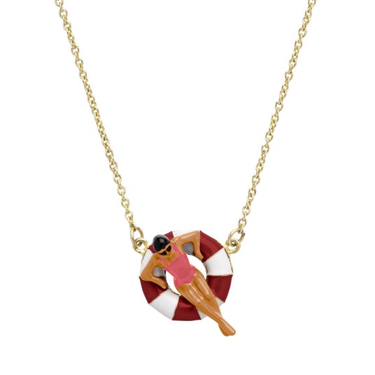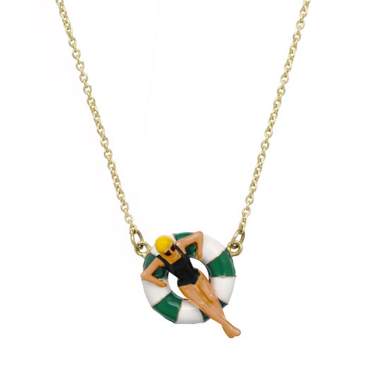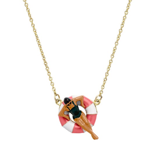エナメルでつくられた立体的なモチーフは、身に着けると体の動きに合わせてまるで泳いでいるかのように首元で軽やかに揺れて、胸元を繊細に彩ります。