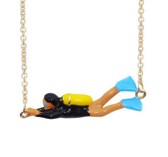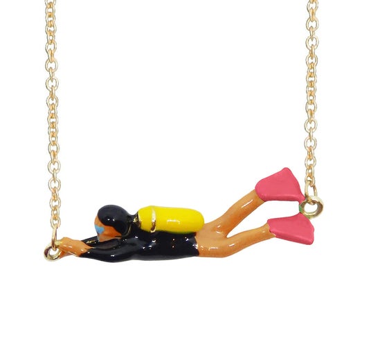 ダイバーが海に飛び込む様子を遊び心たっぷりに表現したネックレスは、新しい物事を始める時や、新しい環境に飛び込むあなたの背中を押してくれます。