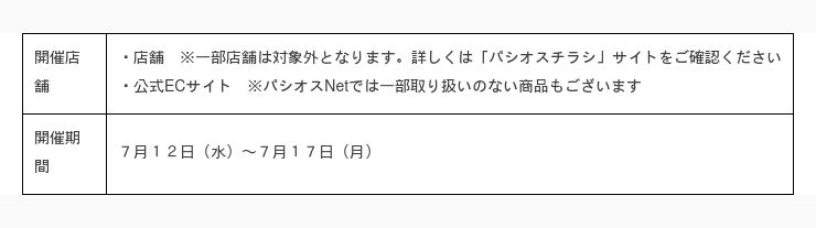 ・「パシオス公式LINE」(https://line.me/R/ti/p/@205fzbrb)